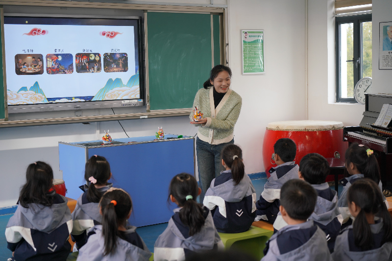 我校颜志伟老师执教一年级唱游·音乐课,以中秋传文化问主题,围绕节奏念诵《嫦娥》、音乐故事《吴刚与桂花树》和表演唱《兔儿爷》三个核心内容,构建了完整的单元教学体系。教学设计充分体现“欣赏、表现、创造、联系”四位一体的教学理念,通过情境创设、肢体律动、打击乐伴奏等丰富的音乐实践活动,引导学生深入体验中秋传统文脉。通过动画讲解、节奏学唱、分组表演等方式,激发学生对传统文化的兴趣,引导学生成为传统文化的“小小传播员”。
