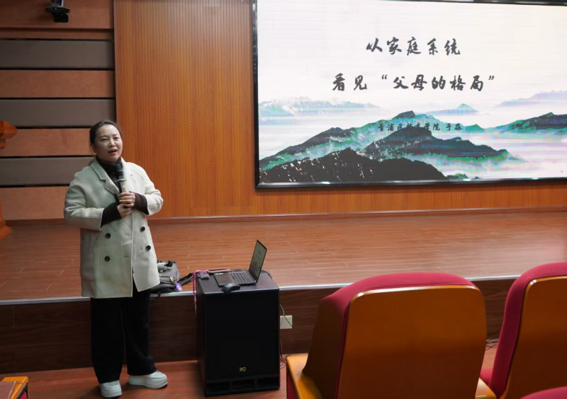 活动伊始,家长们齐聚学校小剧场,参加了家长学校的专题讲座。此次讲座由青浦区教师进修学院于淼老师主讲,主题为“从家庭系统看见‘父母的格局’”。于老师通过生动的咨询室真实故事导入,围绕“孩子内驱力的激发”“家庭系统的核心内涵”“孩子信念的形成根源”及“学习陪伴的科学方法”等关键话题,用通俗的语言解析家庭环境对孩子成长的深远影响,引导家长以更开阔的视角关注孩子的心理需求与人格培养,分享了贴合小学阶段孩子特点的沟通技巧与陪伴策略,引发家长们的强烈共鸣。